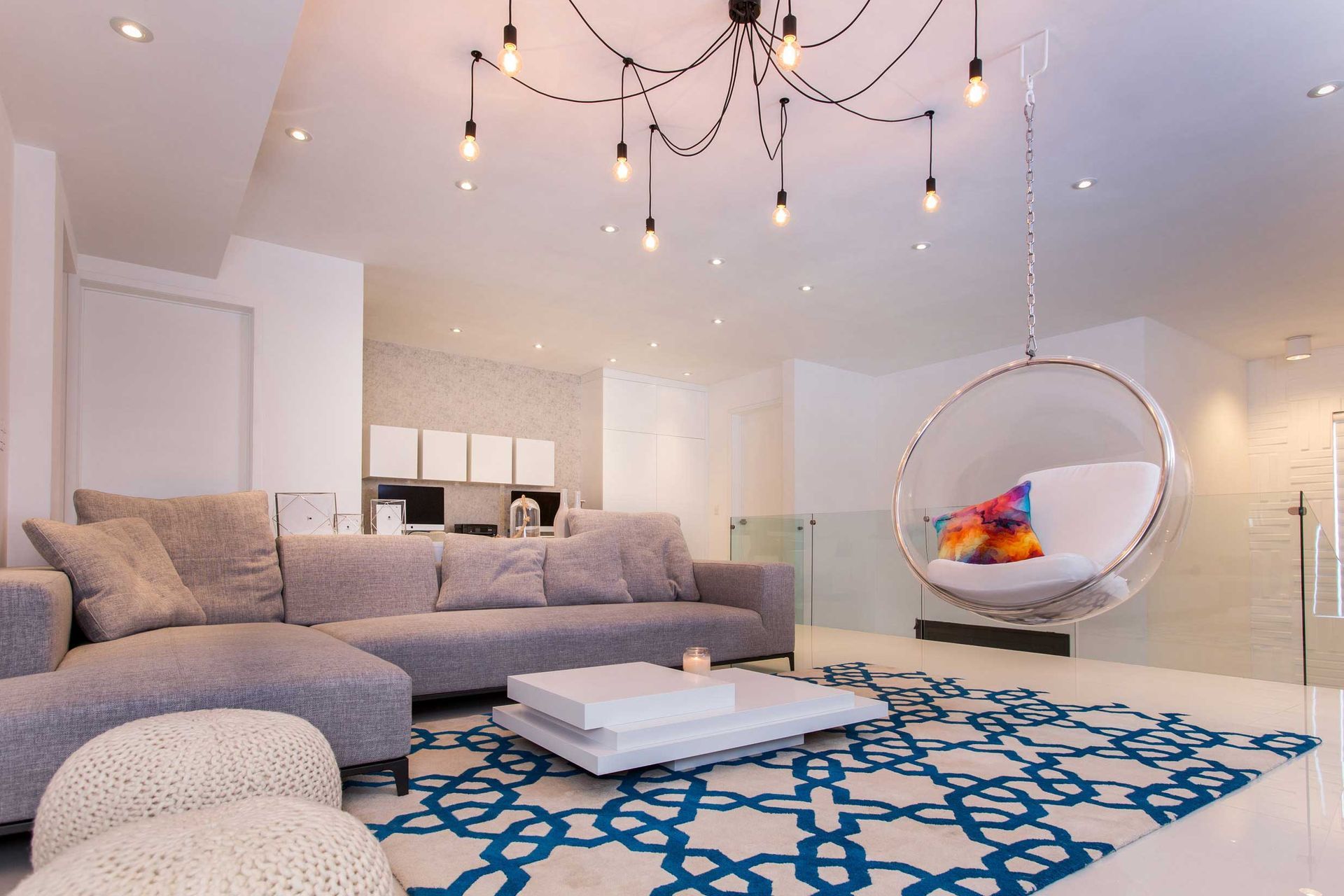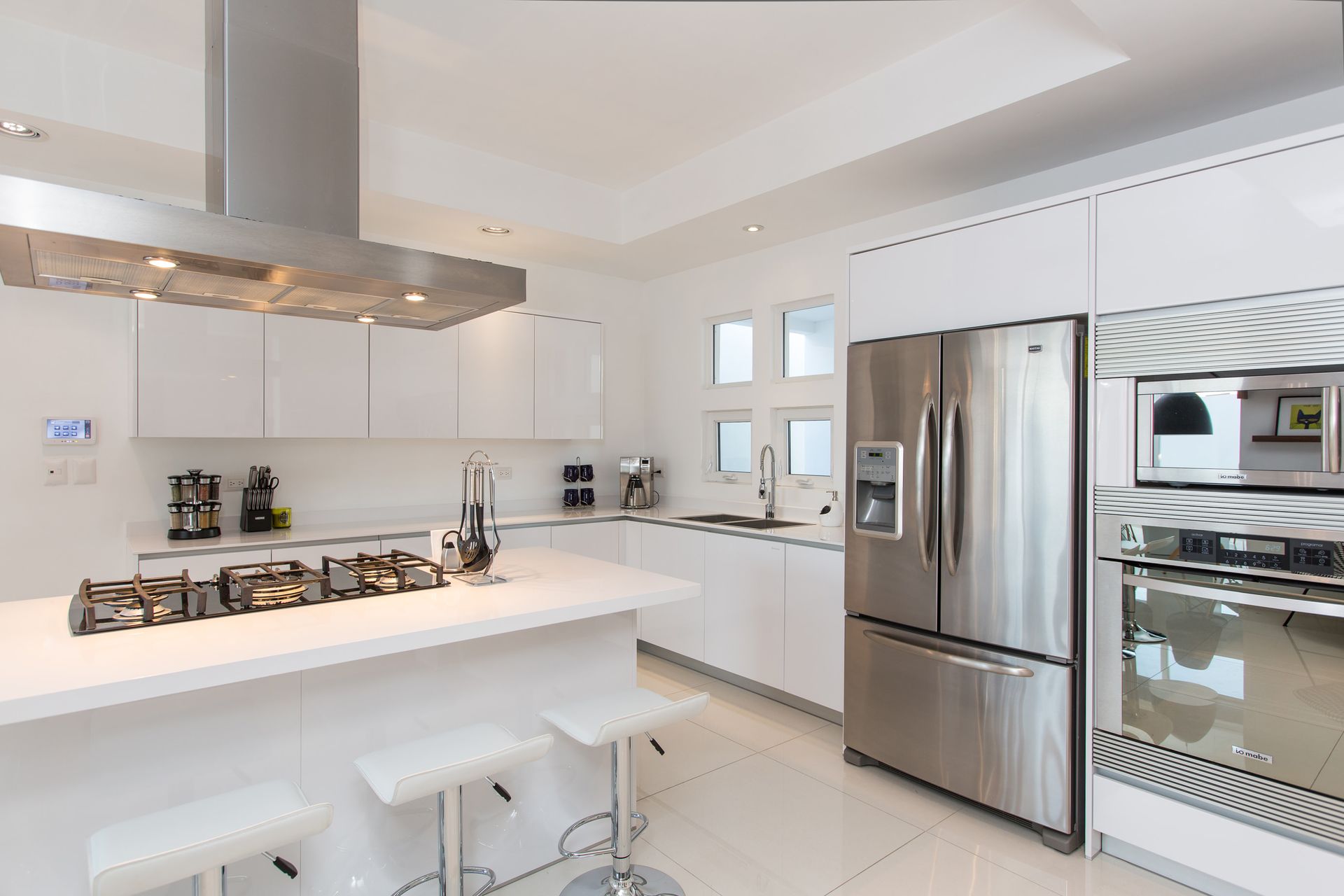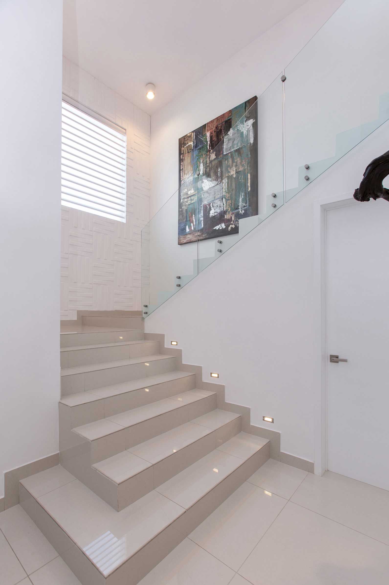 Así como en la mayoría del mobiliario y accesorios de la casa, como la cocina, puertas interiores e inclusive las cancelerías de los ventanales se seleccionaron en este color, que junto a la iluminación natural y artificial de todo el gran espacio, se crea un ambiente de serenidad y orden.
