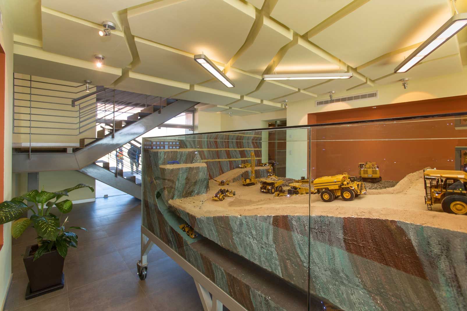 Y por último, ocultar todos los equipos de aire acondicionado que se instalaron a nivel de piso. Para los usuarios del edificio, el mirador panorámico se ha convertido en un lugar de reunión esencial del edificio, no solo para los operadores, sino también para las visitas, directivos e incluso inversionistas que acuden al lugar, donde es posible explicar y apreciar la operación del tajo.